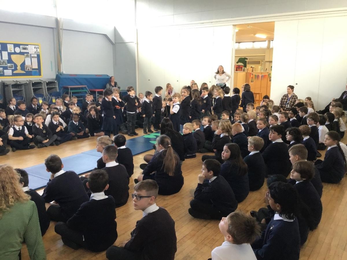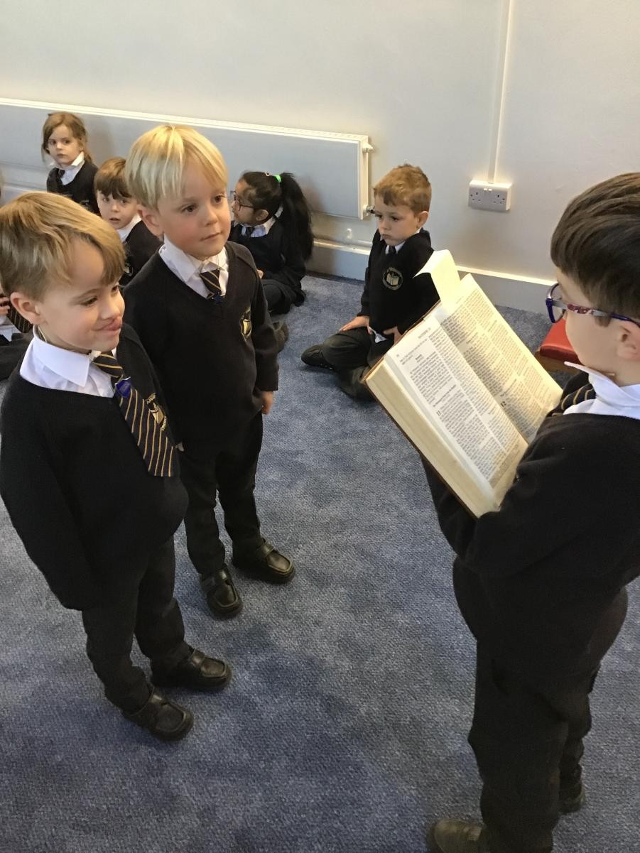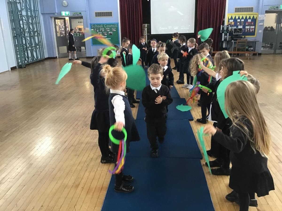 The Reception children learnt a song about Jesus entering Jerusalem on a donkey which we shared with the school.