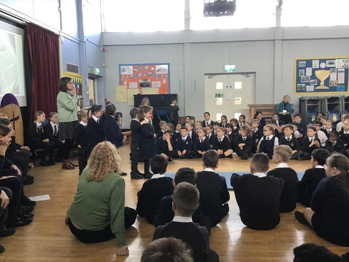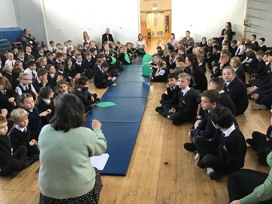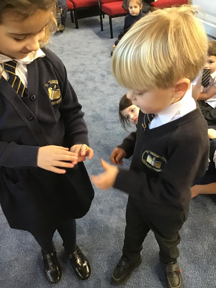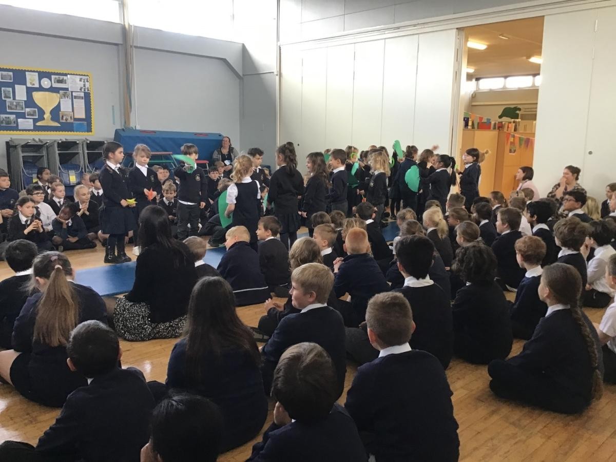 The Reception children learnt a song about Jesus entering Jerusalem on a donkey which we shared with the school.